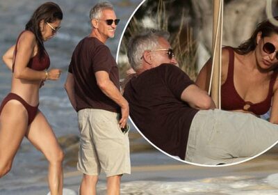 Gary Lineker, 62, and bikini-clad ex Danielle Bux, 44, look ‘relaxed and intimate’ as they share a giggle on an Ibiza beach seven years after their divorce