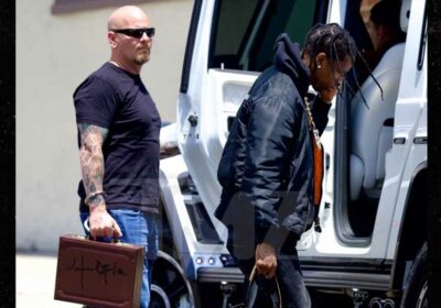 Travis Scott is inching closer to the release of his first album drop in 4 years, and taking extra precautions to make sure it doesn’t leak … literally handcuffing the damn thing to his muscle-bound security guard.