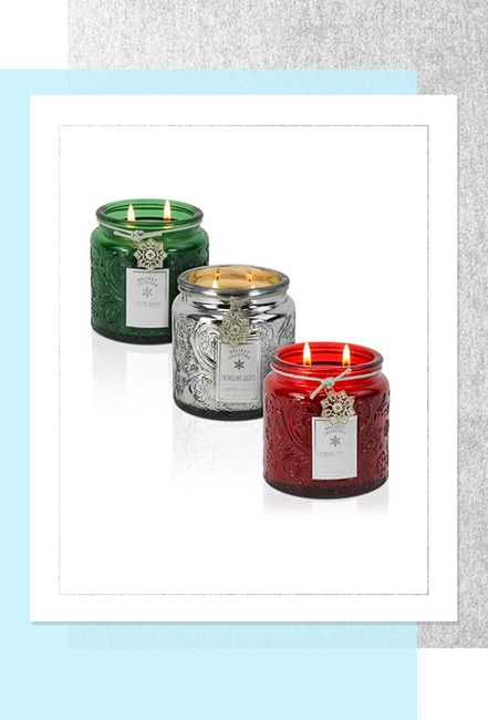 BUY IT: Dynamic Collections Snowflake Embossed Jar Candle – 3 Pack, $30 at Amazon