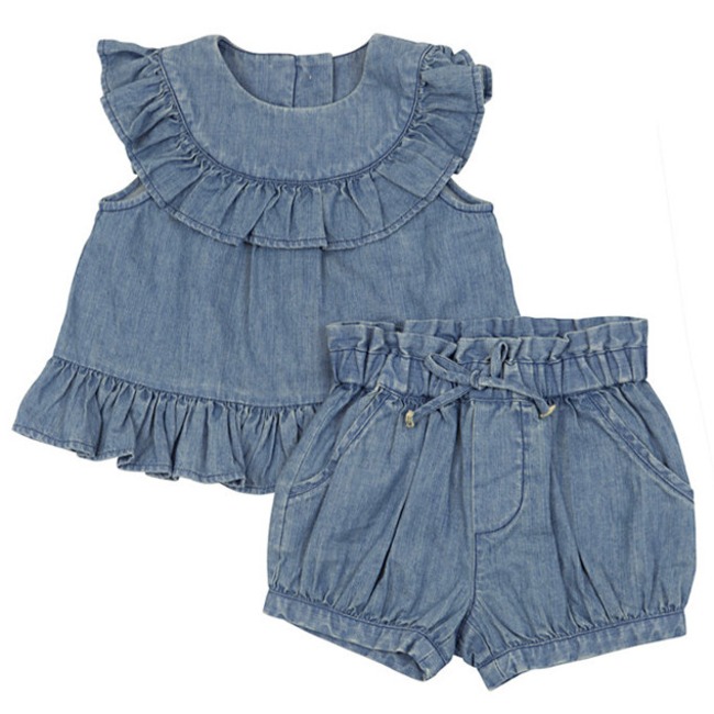 Kaavi James Collection Ruffled Denim Top and Short Set