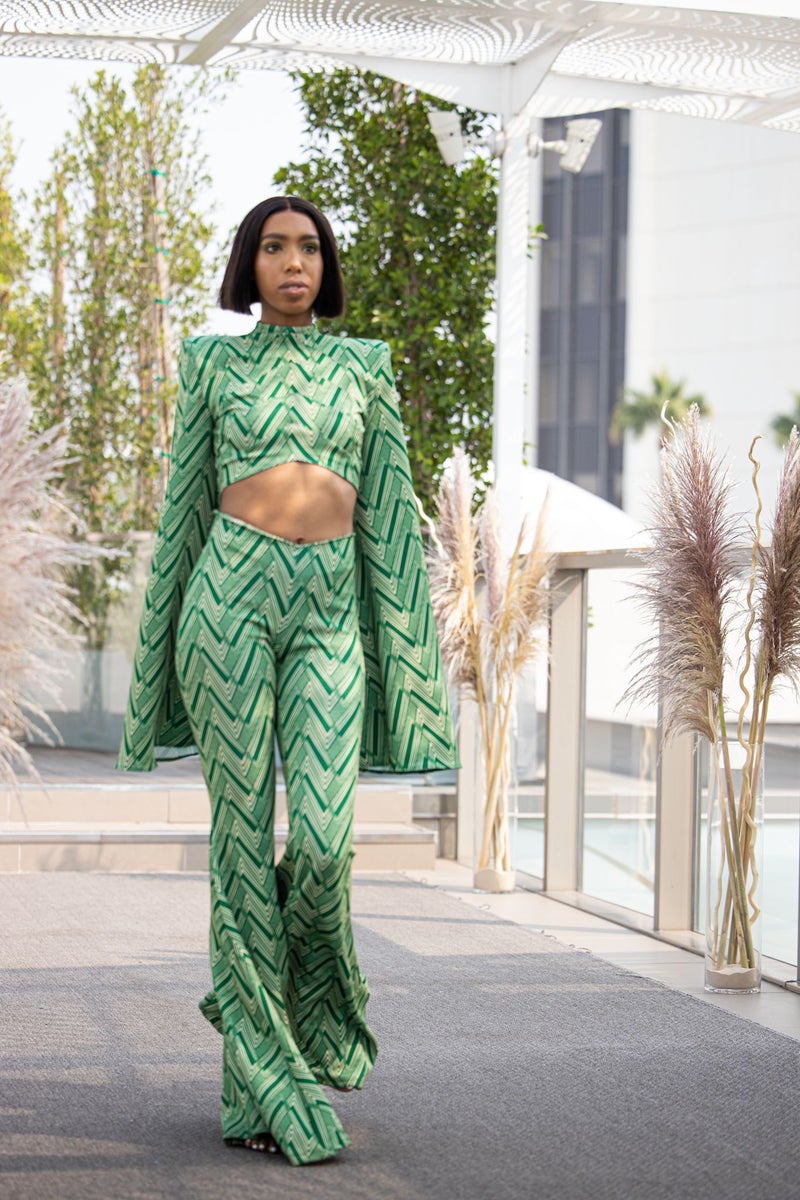 Her designs include bell bottom pants, midi dresses with shoulder pads and matching two-piece sets and suits. “I wanted to create something bold that every boss or aspiring boss can mind their business in while looking good. I was always good with prints and cuts and this collection embodies that,” the Los Angeles based designer explained.In the past year, Kameni made waves as a black designer as her garments have been worn by the likes of Amanda Seales, Tracee Ellis Ross and Janet Jackson. Her unique sense of urgency creates a compassionate relationship between her and her clients.
