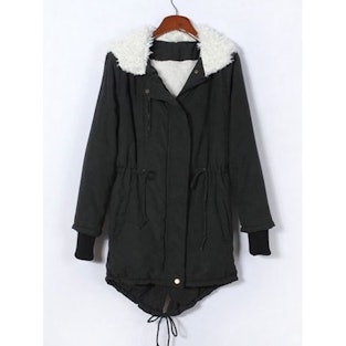 For a more classic winter jacket that’s warm and cute, this fleece-lined parka is a perfect option. Its adjustable waistband can be left loose for an oversized feel or cinched to accentuate your waist.