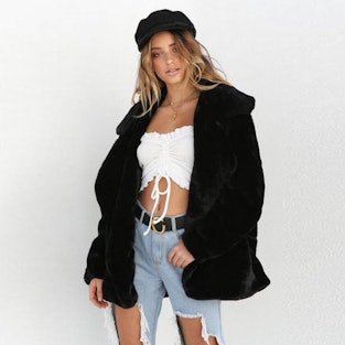 For a winter look that’s totally glam, this oversized faux-fur coat is a no-brainer.