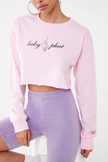 "Celebrating a time when girls were running home to watch TRL with a pink flip phone in tow, Baby Phat epitomized everything to love of the early 2000s — think hot pink, rhinestones and the iconic cat logo," reads the press release. That same vision holds true to the new collection, but it’s been updated with subtly more modern twists including revamped silhouettes and trendy cuts. Crop tops of all types, tanks, biker shorts, and sweatshirts are all included in the new release, which runs between $15 -$25 and is available up to size 4X.
