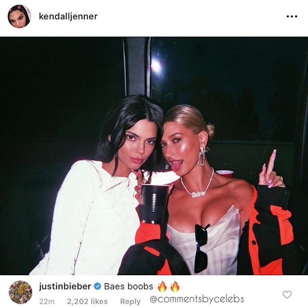 When Kendall Jenner shared a photo of herself hanging out with Baldwin at a party, Bieber couldn’t help but take notice of his wife’s, er… assets. To be fair, she looks fire in this bustier, so I can’t blame him for being thirsty.