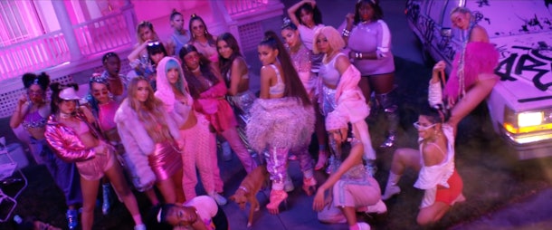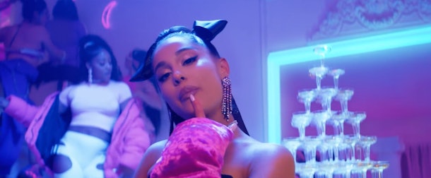 So, let’s talk about this single in particular. From one glance at the lyrics or the music video, you can tell it’s all about Grande’s fame and fortune. It tells the story of her and her best friends shopping at Tiffany’s and slipping on red-bottom shoes. It also tells us that she loves treating herself to expensive things, like an outfit in a store window or brand new lashes, without worrying too much about the cost. (Girl, I don’t even blame you.)