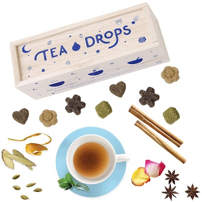 These pressed tea pods are perfect for the dedicated tea drinker. The pods are made from pressed, organic tea leaves — drop one into a mug of hot water for instant infusion. They take less time to brew than tea bags, and you don’t have to deal with the question of where to put the tea bag when you’re done brewing. (Super annoying when you’re out on the road.) Each set comes with eight drops in lightly sweetened, various flavors: matcha green, rose Earl Grey, citrus ginger, and sweet peppermint.
