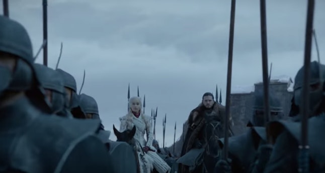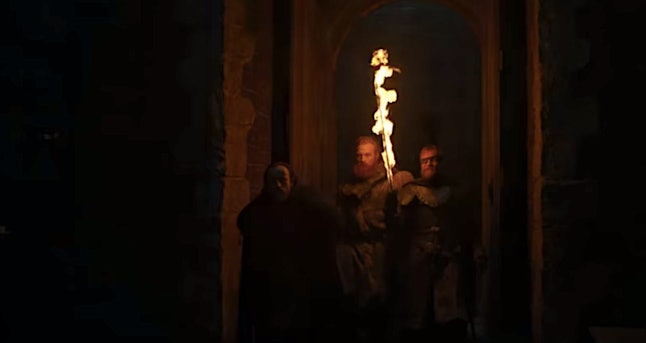 Earlier this year, HBO released a teaser that featured Jon, Sansa, and Arya walking through the Stark family crypt before coming face-to-face with their own statues, which seemed to indicate that their deaths could be on the horizon. (Stark members only receive a statue in the crypt once they’re dead.) The crypt is also where Lyanna Stark is buried, so Jon’s visit down there in the trailer could signify yet again him learning the truth about his lineage once and for all.