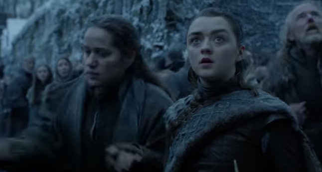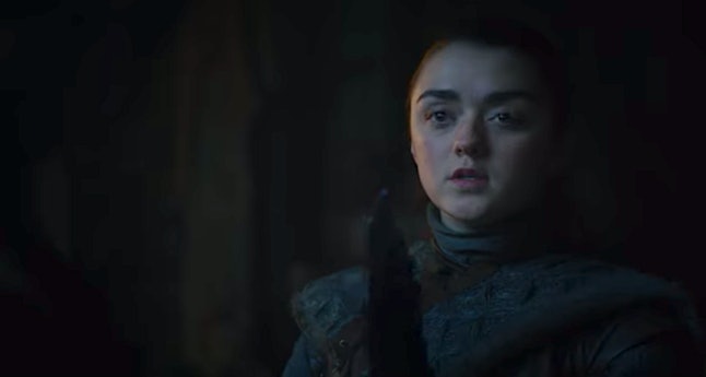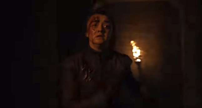 As the scene shows Arya running down dark corridors, her voiceover says: "I know death. He’s got many faces. I look forward to seeing this one." Cut to Arya pointing a dagger at someone. Could this be the person that she runs away from? She doesn’t have a bloody forehead yet, so this could be how it comes to happen.