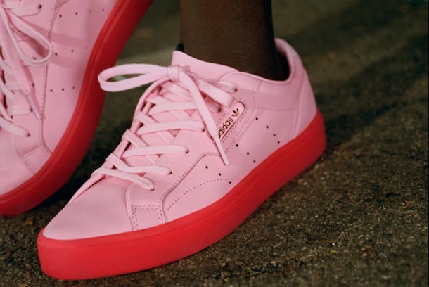 Set to drop on March 28 at adidas.com, the new styles will arrive just in time for spring. They’re the newest arrivals in Adidas’ Sleek line, which exclusively includes shoes based on the brand’s tennis sneaker. "Designed for those who continuously create themselves, this clean silhouette complements any look," describes the brand on their website. While the classic all-white version featuring a soft leather upper, lace-up design, and rubber sole is cool as-is and would make for the ideal go-to white sneaker that every fashion aficionado will tell you you have to have, trust me when I say that the upcoming upgrades are about a million times better.