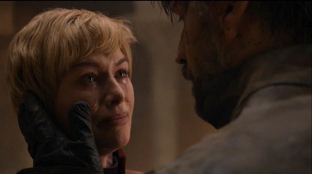 The reunited twins attempt to escape the crumbling castle through the underground Dragonpit, but become trapped by the rubble. In their final moments, Cersei breaks down over wanting to save their unborn child, and Jaime embraces her, telling her that "Nothing else matters; only us." Right after that, Cersei and Jaime are engulfed in a barrage of falling stones and it is the last we see of them.