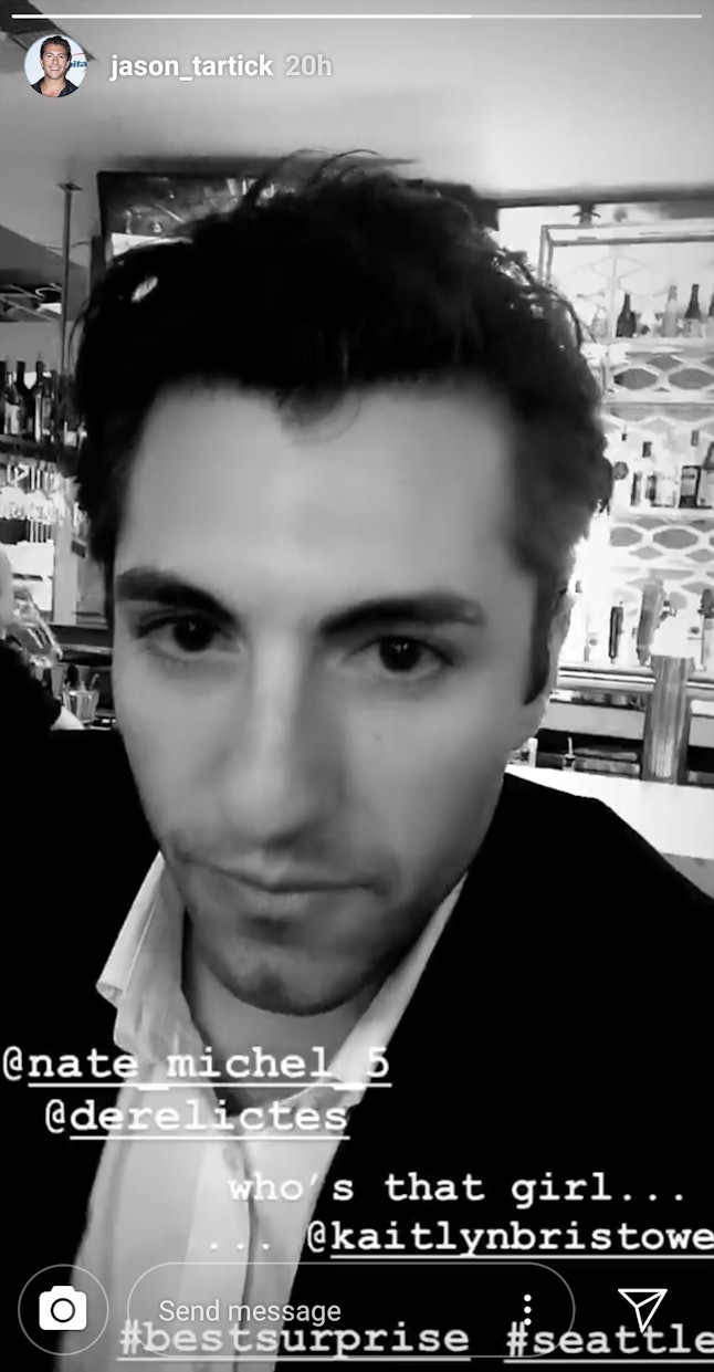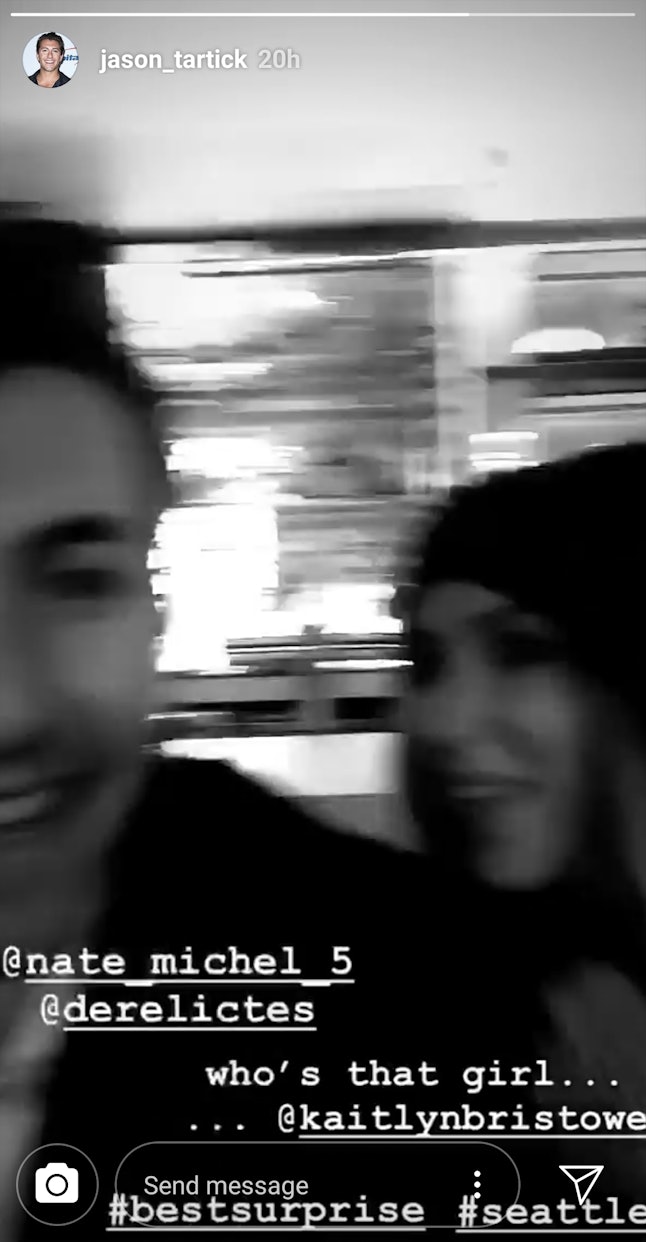 Jason unveiled his surprise visitor on his Instagram Story, sharing a short clip of the pair hanging out with some of his friends, along with the caption "Who’s that girl…@kaitlynbristowe #best surprise #seattle." In the video Kaitlyn is seen giggling with her arms wrapped around Jason, and referring to herself as his "sweet girlfriend." The pair’s playful chemistry was also on display, with Jason jokingly asking Kaitlyn, "Where did you come from?"