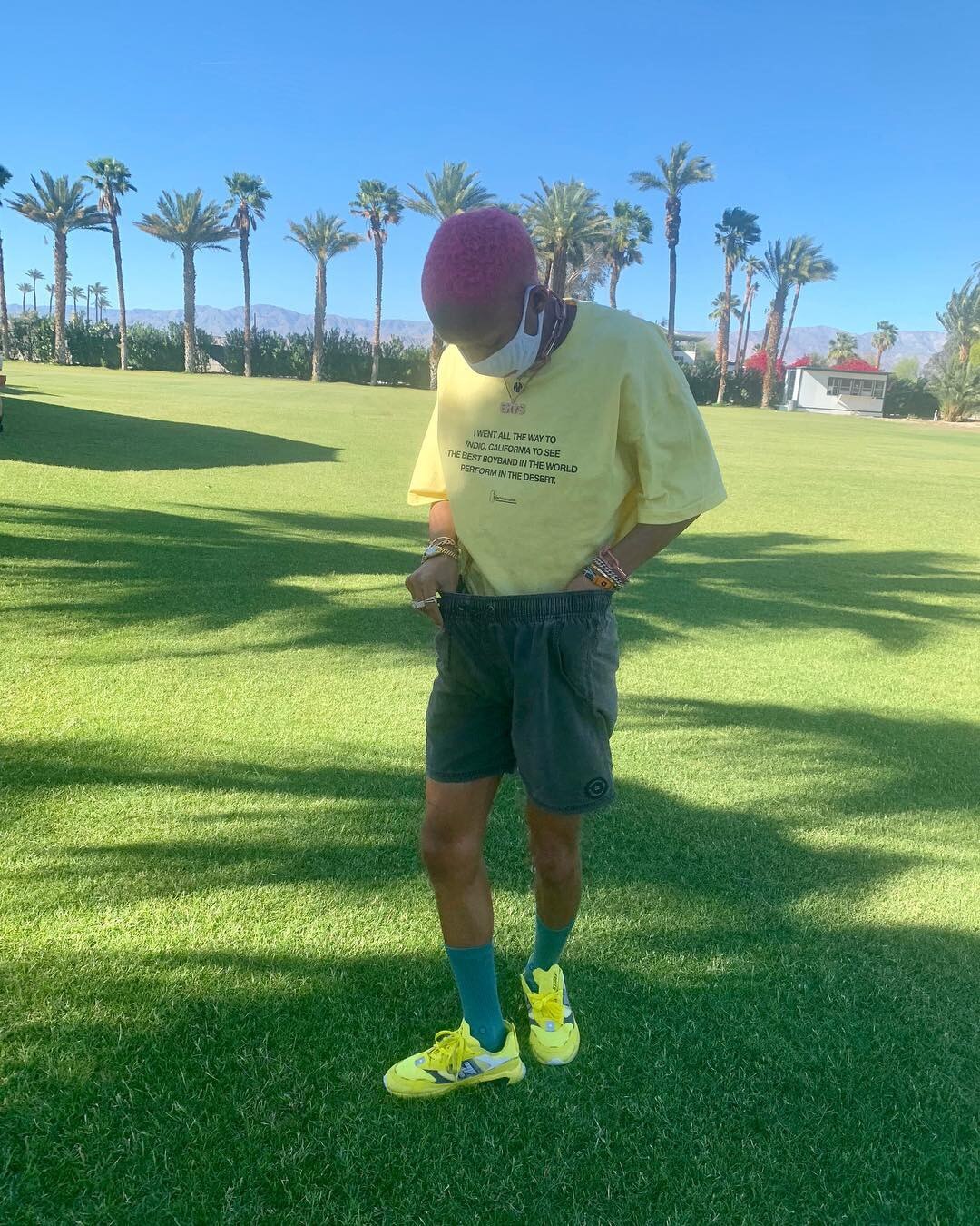The performer stays cool as he braves the scorching temperatures of Indio, Calif.