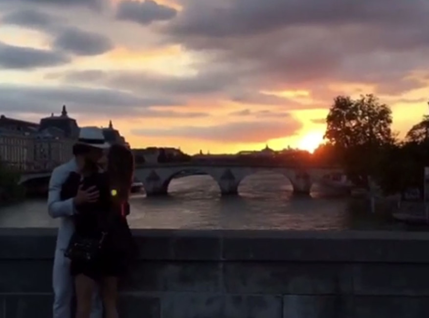 Aw, how romantic. The lovebirds smooched under the setting sun on Valentine’s Day.