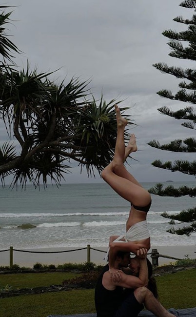 Reed loves doing acrobatics and her hubby loves supporting her, especially if it means quick kisses are involved!