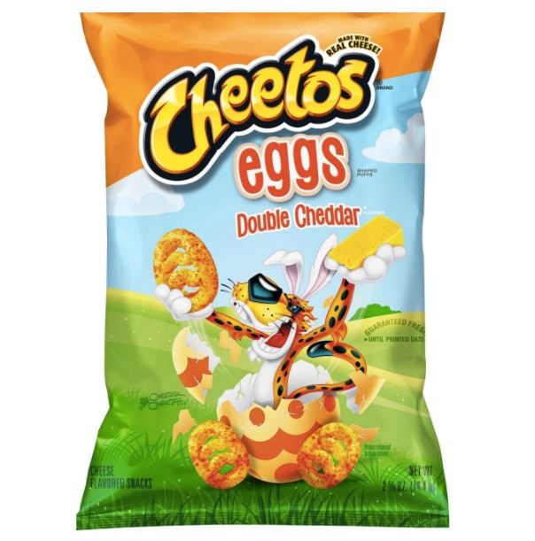 Now that you know where you can buy Cheetos Eggs, I’ll tell you a little bit more about them. According to the Easter-themed Cheetos bag (which features Chester Cheetah with bunny ears bursting out of an Easter egg), Cheetos Eggs have double the cheddar in them. In my opinion, Cheetos are delicious as they are — but I can’t even imagine how good they taste with double the cheese. What makes them even better is that the cheese they’re made with is real, per Target.