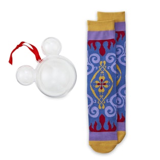These Aladdin-inspired socks, also inside of an ornament, look like the magic carpet and like they’re pretty cozy.