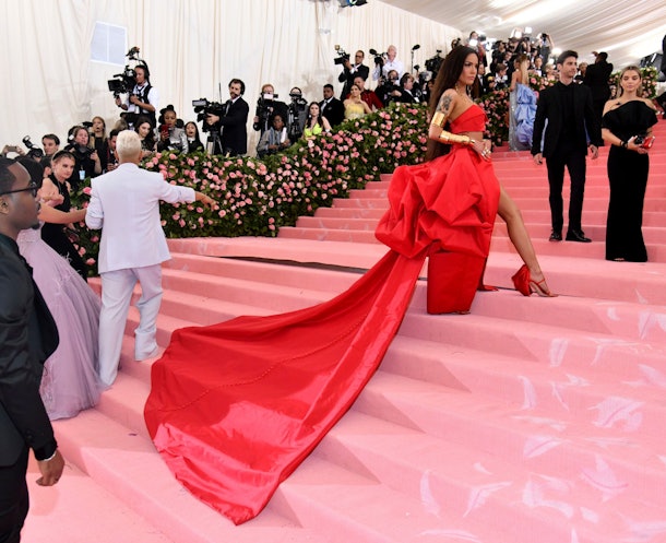 The theme of Monday night’s gala was camp. Camp as in extravagant, kitschy, over-the-top, garish, ironic — not as in singing around a fire and rowing boats. Inspired by an essay written by Susan Sontag, the 2019 Costume Institute exhibition is entitled "Camp: Notes On Fashion," and "examines how the elements of irony, humor, parody, pastiche, artifice, theatricality, and exaggeration are expressed in fashion," according to the Met’s website. In terms of how this theme would translate to the Met Gala’s red carpet, it was assumed that a more-is-more approach to style would by championed in truly unique fashion, and I’ve got to say, the looks we saw were some for the books.