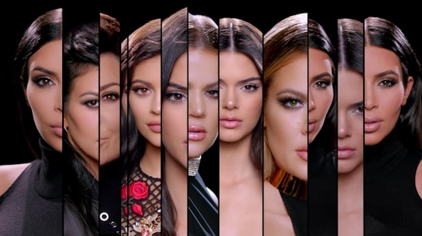 Of course, fans can draw a straight line of all genetics and features to family matriarch Kris Jenner, who shares the same signature eyes, cheekbones, dark hair, and smile with all of her daughters. You can see what I mean mostly clearly in this old Keeping Up With The Kardashians intro sequence: