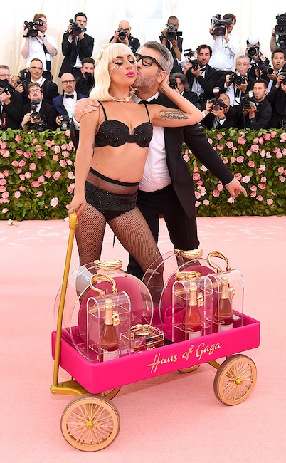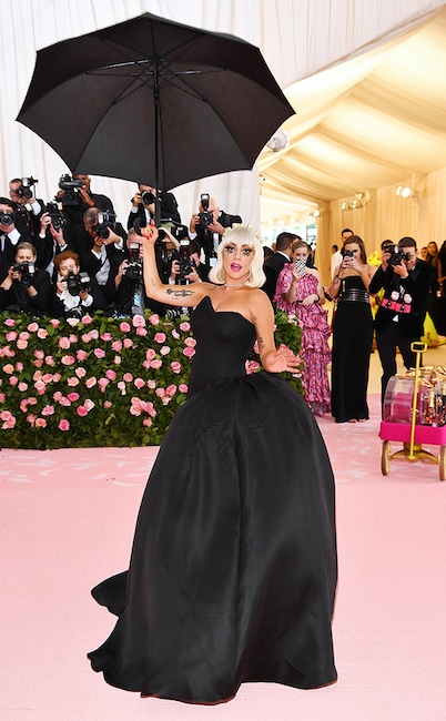 The Oscar winner had not one, not two, not three, but four costume changes on the red carpet alone. Gaga first arrived in a hot pink parachute dress designed by Brandon Maxwell that had to be carried by five different people. The handlers also carried umbrellas and danced around her as she posed and had the time of her life in front of the Metropolitan Museum of Art.