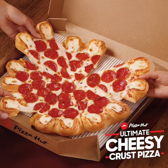 If your main squeeze is cheese, prepare to fall even more in love this February. In addition to the Valentine’s Day Bundle, Pizza Hut is also bringing back the Ultimate Cheesy Crust Pizza for a limited time. Your heart will burst with how stuffed this pie is with cheese. And not just one type of cheese. All of the cheese. This particular pizza features 16 pockets oozing a blend of Mozzarella, Provolone, White Cheddar, Asiago and Fontina cheeses. And may I suggest that a slice of the Ultimate Cheesy Crust Pizza actually looks like it’s heart shaped? Coincidence? Probably. Fitting? Beyond.