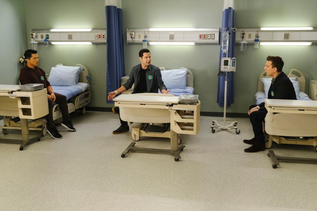 Spoilers ahead for Crazy Ex-Girlfriend Season 4, Episode 16. "Dr. Akopian, do you watch The Bachelor?" Rebecca asks her therapist, upon casually "running into her" at a coffee shop. She clarifies that Josh, Nathaniel, and Greg proposed a similar competition to help her choose between them: go on one date with each of them, then pick who she wants to be with. It’s certainly an unorthodox — and highly unrealistic — way of deciding who to date, but that’s part of the point Crazy Ex-Girlfriend‘s Bachelor parody is trying to make. The Bachelor is a simulated atmosphere — one in which grand, romantic gestures and big proclamations of love abound — but in real life, the deepest expression of love are often some of the quietest. And only one man in Rebecca’s life seems to understand that.