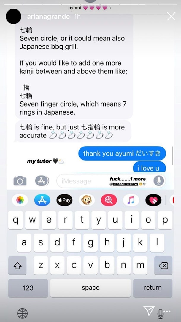 Not long after debuting the tattoo, she posted a screenshot of a text conversation with her Japanese tutor.