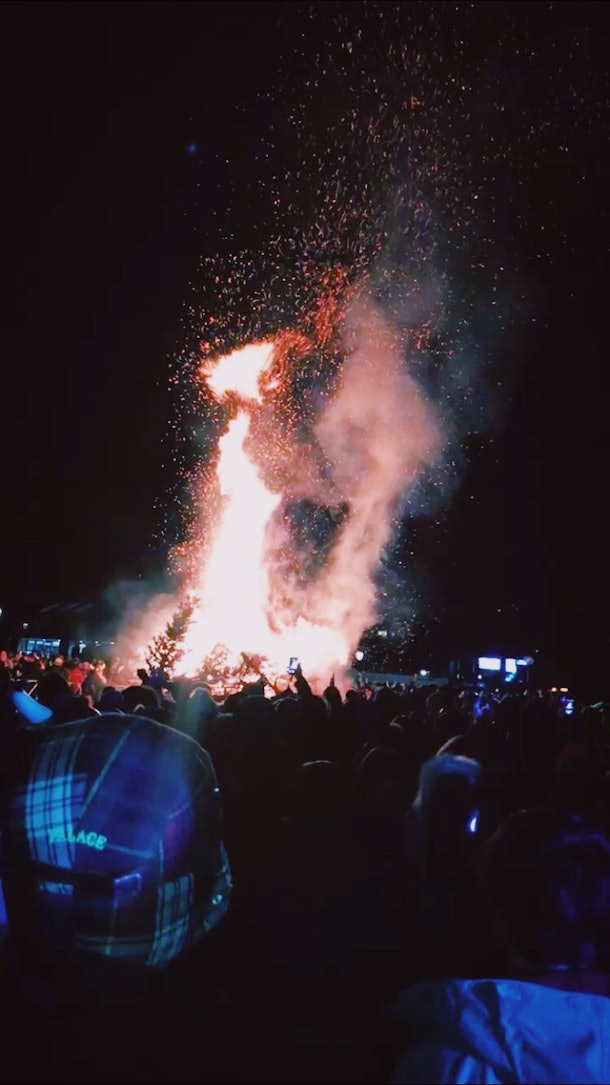 In my opinion, one of the saddest days of the year is when you take down the Christmas tree and holiday decorations. The glitzy garlands, shiny big red bows, ornaments, and fairy lights are put into boxes, and the tree is left on the sidewalk waiting for pickup, feeling sad AF. (You can call me a sap, because I always tear up a bit.) But when I headed to the Ullr bonfire the beginning of January, my spirits were lifted. The bonfire at Ullr Fest serves as a gathering to dispose your Christmas trees with pride, and it turns into a huge celebration. A big bonfire lit up South Gondola Parking Lot, as music played and locals sent off their trees in style. I mean, Christmas trees bring us joy all season long, so they deserve to be sent off with a party, right?