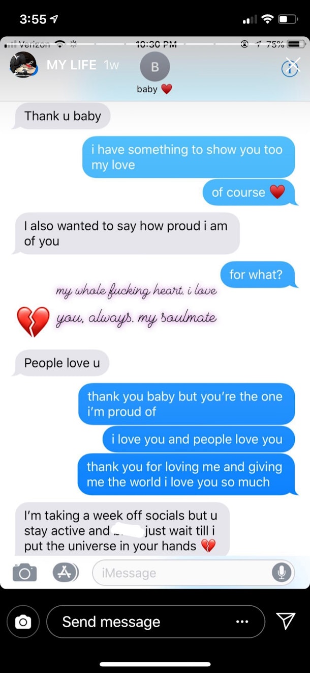In the beginning of the Q&A video with her fans, she mentions that Lil Xan is going to buy her a new recording device to make higher quality videos in the future and she also has a screenshot of him encouraging her to "stay on social" and promising to "put the universe" in her hands.