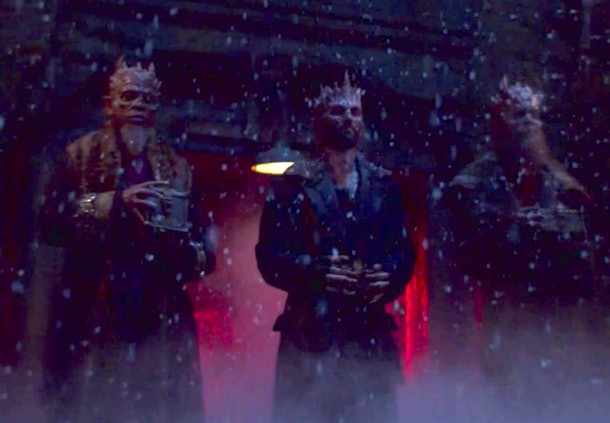 Was this just an extra little spooky twist on Christmas tradition before the end of the special, or could this mysterious scene be teasing a major arrival for Season 2? After all, if this is a demonic version of the nativity story, then it only stands to reason that these three gift-bearers must be heading towards some satanic version of Jesus: the antichrist.