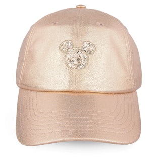 Mouse ear headbands not your jam? This hat is a little more subtle, as well as classy as heck. Keep the sun off your face in style with a sparkly, sequined topper in a “Briar Rose” gold lamé design.
