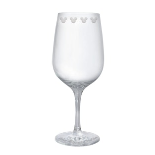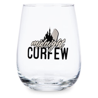 The only glass to not pay homage to the world’s most famous mice is this one, which instead gathers inspiration from the world’s most famous princess. A nod to the moment in Cinderella when the clock strikes midnight and her gown reverts to rags, this stemless glass reads "Midnight Curfew."