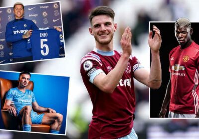 Declan Rice will become the most expensive English player in the Premier League after the completion of his £105million switch from West Ham to Arsenal – and the 17th man to move to a Premier League club for £70m or more.