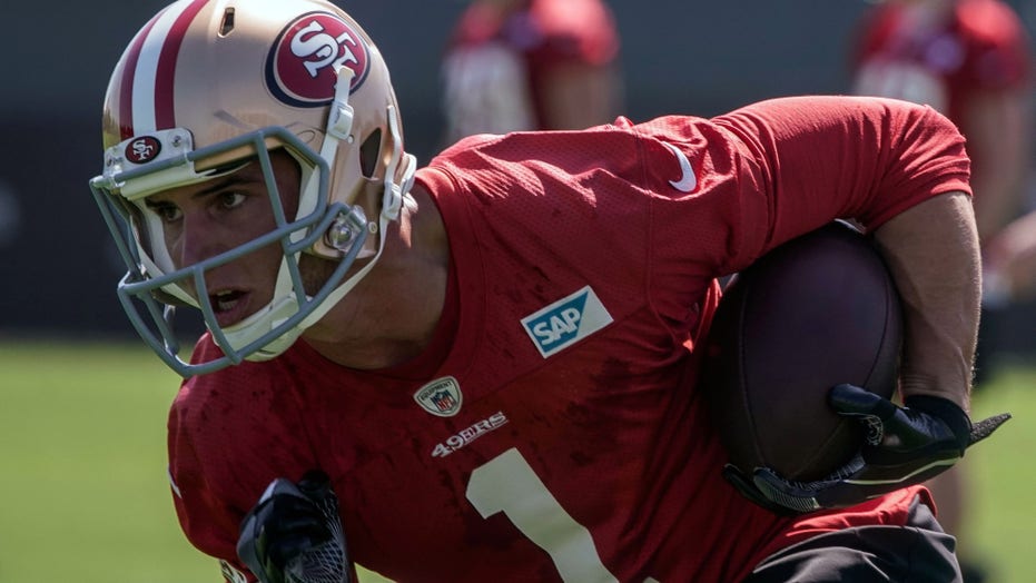 Jul 26, 2018; Santa Clara, CA, USA; San Francisco 49ers wide receiver Max McCaffrey (1) warms up during training camp at the SAP Performance Facility. Mandatory Credit: Stan Szeto-USA TODAY Sports