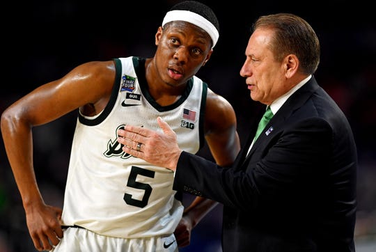 Michigan State guard Cassius Winston talks to head coach Tom Izzo during the national semifinals of the 2019 Final Four. (Photo: Bob Donnan, USA TODAY Sports)