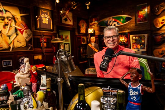 The surrounding pieces have largely remained the same. The various knickknacks and memorabilia amassed over the years by Patrick, a self-described hoarder, still line the studio walls. Movie posters, pennants and signed jerseys. Books, promotional material and helmets. The somewhat indescribable, such as the cast of Fergie's bust bearing the pop singer's signature above a personalized message: "Breast wishes," it reads.