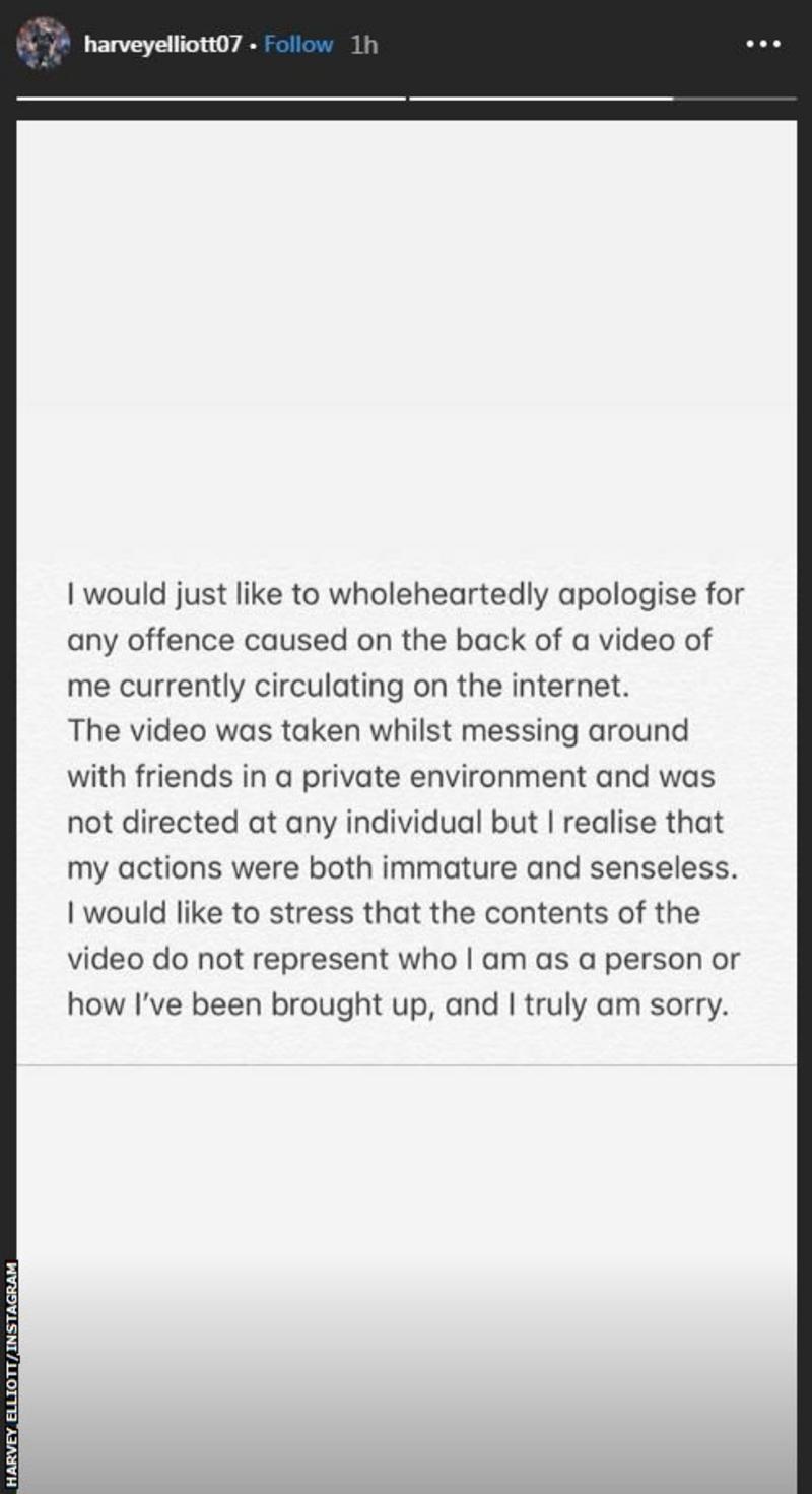 Harvey Elliott: Liverpool youngster apologises for offensive video