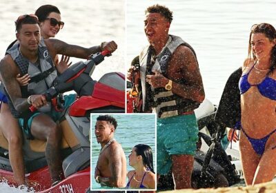 Jesse Lingard frolicks on a beach in Barbados and goes jet-skiing with a mystery brunette after the £200,000-a-week Premier League star was dumped by Nottingham Forest
