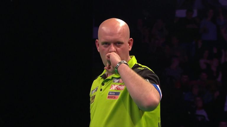 Van Gerwen lost the first two legs in their top-of-the-table clash and was a double away from falling 3-0 behind before a stirring comeback saw him triumph 8-2.