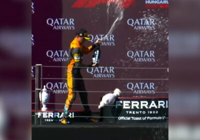 Watch moment Lando Norris smashes his Hungarian Grand Prix trophy