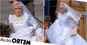 Gillian Wright, who portrays Jean, was pictured in a wedding dress, filming scenes for the BBC One soap in the Adventure Island theme park on Southend’s seafront on Tuesday March 15.
