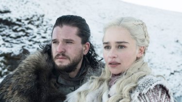 Kit Harington as Jon Snow and Emilia Clarke as Daenerys Targaryen in Game of Thrones.