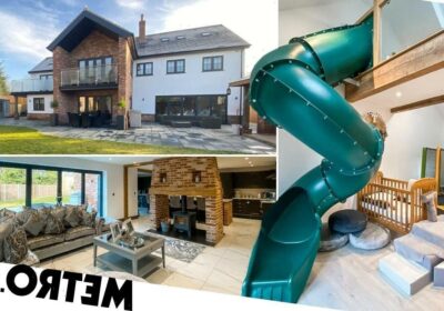 There are plenty of other fancy features throughout – underfloor heating on the ground floor, a purpose-built entertainment area in the garden, a built-in wine cooler – but let’s be real, you’re here for the slide.