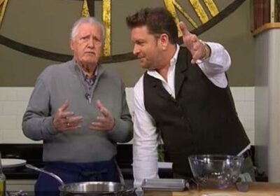 James Martin’s Saturday Morning on ITV welcomed veteran chef Brian Turner to the show as he rustled up a “cheap and economical” lamb dish. Brian, 76, suffered a stroke last summer and although he has recovered well, he wanted to address his occasional stammer.