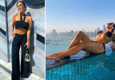 Vicky Pattison looks incredible in black bikini in Dubai as she sunbathes by the pool with a wine