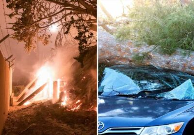 Images of cars crushed under trees that have fallen under the strain of the strong winds in the region have also been shared widely.