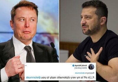Elon Musk has become embroiled in a Twitter spat with Ukrainian President Volodymyr Zelensky after claiming the country should remain ‘neutral’ in the war against Russia – as a diplomat told him to ‘f*** off’.