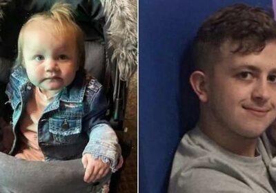 Father, 22, and his 18-month-old daughter are killed and woman is left fighting for life after their Ford Fiesta collided with jack-knifing lorry