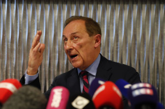 French Ice Skating Federation president Didier Gailhaguet faces media questions in Paris last week.Credit:AP