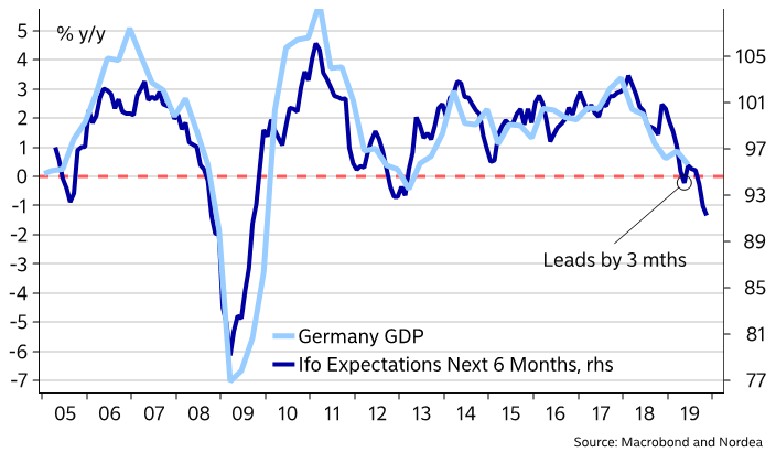 Mikael Sarwe, the head of market strategy at financial group Nordea, said the ifo survey was giving a clear recession warning, tweeting: